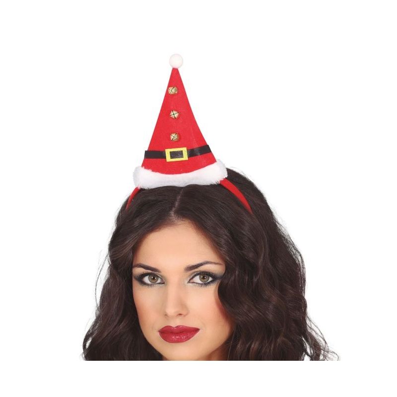 Original diadema navideña con un gorro de Papá Noel y sonido ideal para crear looks divertidos en estas fechas tan especiales. Talla única para adulto hombre o mujer (unisex).