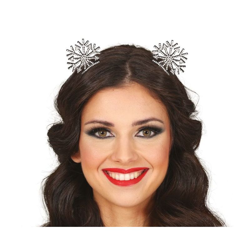 Original diadema con copos de nieve brillantes ideal para dar un toque divertido a tu look estas navidades. Talla única para mujer.