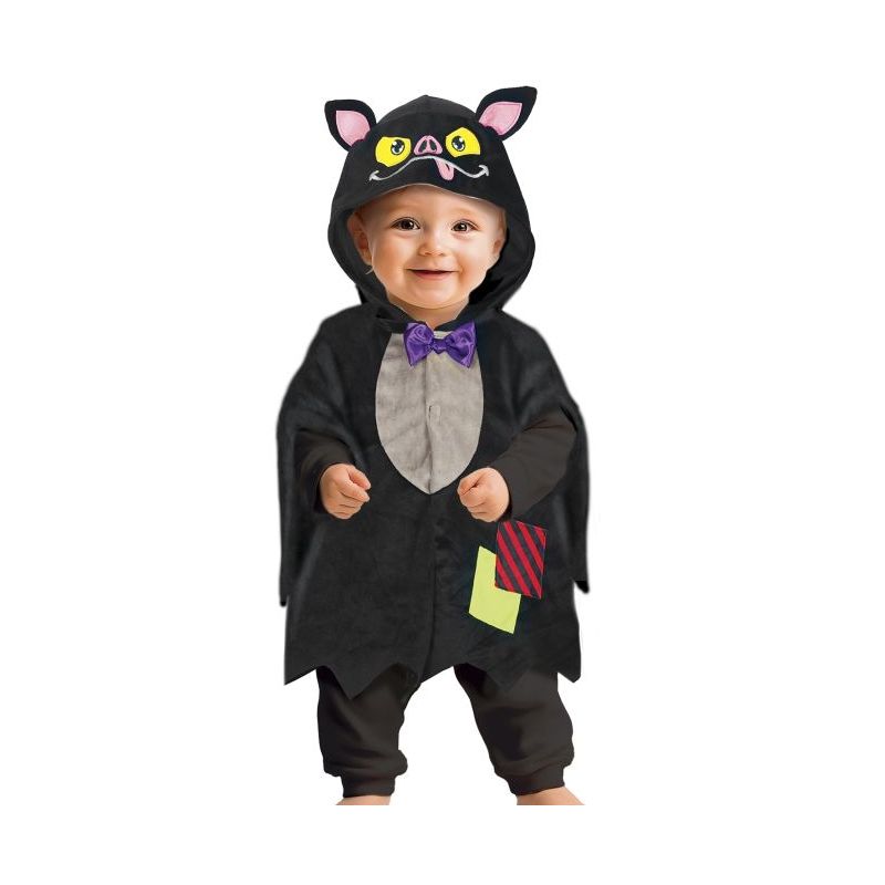 Original y divertido disfraz de murciélago infantil compuesto por un poncho negro con capucha a juego.
