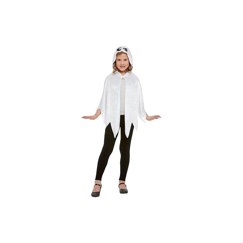 Poncho o capa blanca con capucha ideal para disfrazarse de fantasma en fiestas de Halloween.