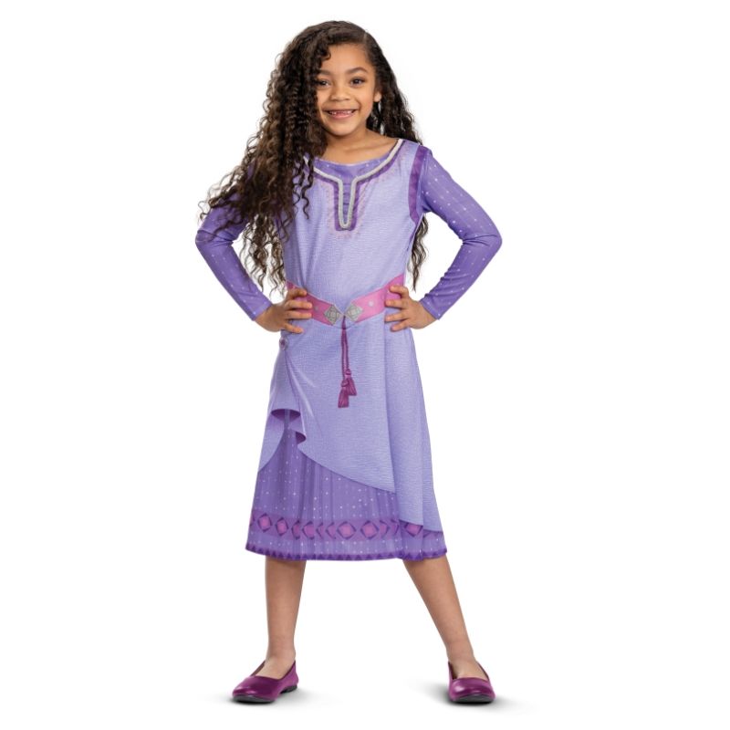 Disfraz de la princesa Asha de Wish infantil compuesto por un precioso vestido morado inspirado en el original. Disponible en tallas para niñas de 3-4, 5-6, 7-9 y 10-12 años.