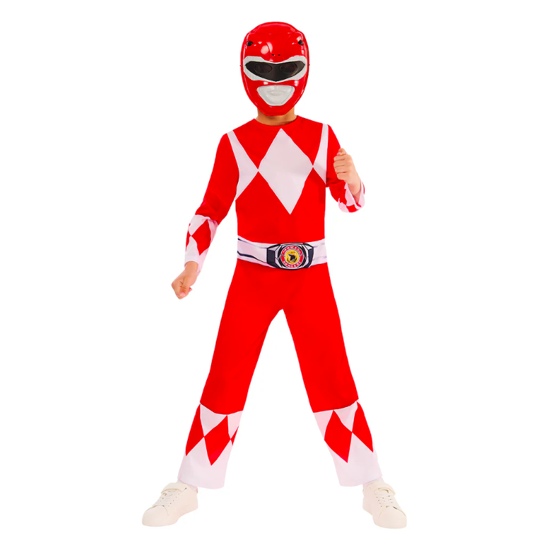 Disfraz de Power Rojo infantil compuesto por traje jumpsuit impreso, cinturón y máscara. Disponible en tallas para niños de 3-4, 5-6, 7-8 y 9-10 años. Licencia oficial.