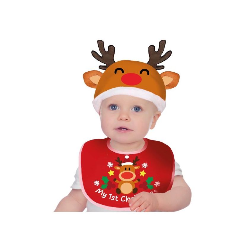 Original set de babero con gorrito ideal para disfrazar a tu bebé de reno en fiestas de Navidad. Otros modelos disponibles a parte.