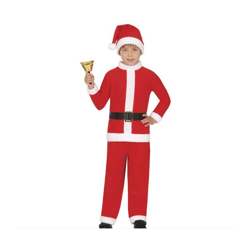 Disfraz de Papá Noel infantil sencillo para niño compuesto por casaca, pantalón, cinturón y gorro. Disponible en tallas para niños de 3-4, 5-6, 7-9 y 10-12 años. Otros modelos disponibles a parte.