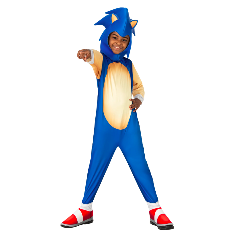 Disfraz del personaje Sonic infantil compuesto por traje de cuerpo entero y capucha. Disponible en tallas para niños de 3-4, 5-6 y 7-8 años. Licencia oficial.