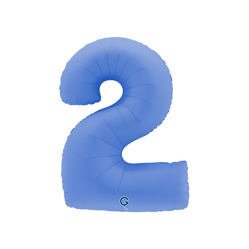 Globo metalizado de foil para helio en forma de número 2. Color azul con efecto mate. Medida: 69 x 89 cm. Se envía sin inflar por motivos de transporte.