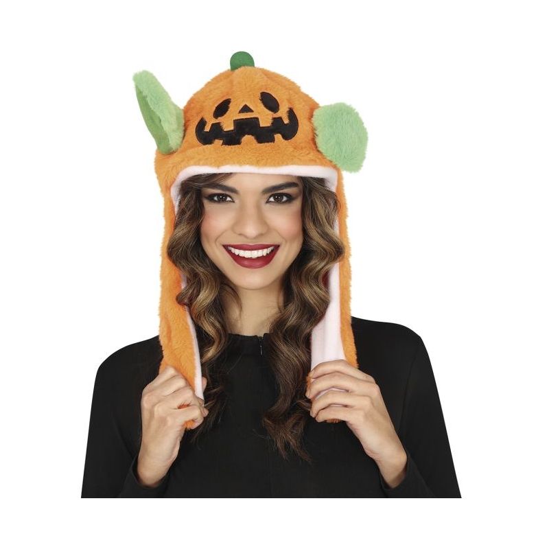 Original y divertido gorro con forma de calabaza naranja con orejas largas colgantes. Al apretar la parte inferior de las orejas, las orejas de la cabeza se levantan.