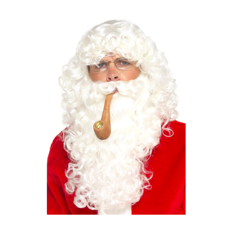 Kit de peluca de Papá Noel blanca con garba rizada a juego, gafas y pipa. Disponible en talla única de adulto para hombre. Otras pelucas de Navidad disponibles a parte.