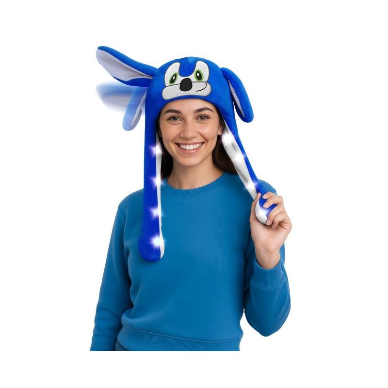 Original gorro de perro azul con orejas largas que al apretar se levantan y lucen. Talla única de adulto para hombre o mujer. Unisex. Otros modelos disponibles a parte.