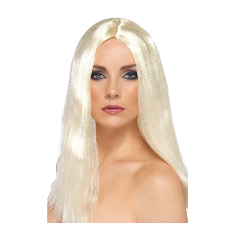 Peluca de pelo largo rubio sin flequillo ideal para crear caracterizaciones y complementar tus disfraces de Carnaval y otras celebraciones. Talla única de adulto para mujer. Otros colores disponibles a parte.
