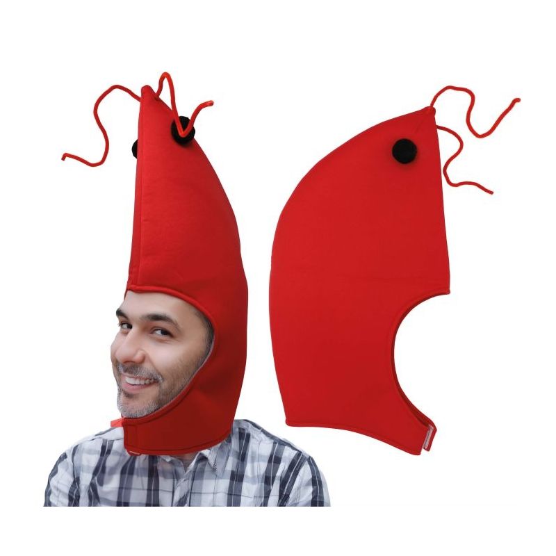 Original gorro con forma de gamba o langostino en color rojo ideal para dar un toque divertido a tu look en fiestas de Carnaval temáticas de animales y otras celebraciones.