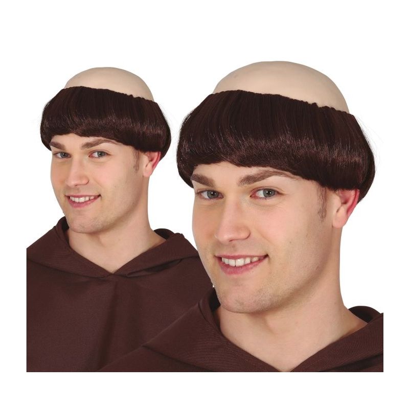 Calva con pelo ideal para complementar tus disfraces de fraile o monje en fiestas de Carnaval y otras celebraciones. Talla única de adulto para hombre.